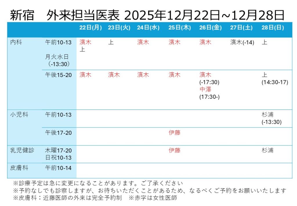 📆12月診療スケジュールのお知らせ👩🏻⚕️