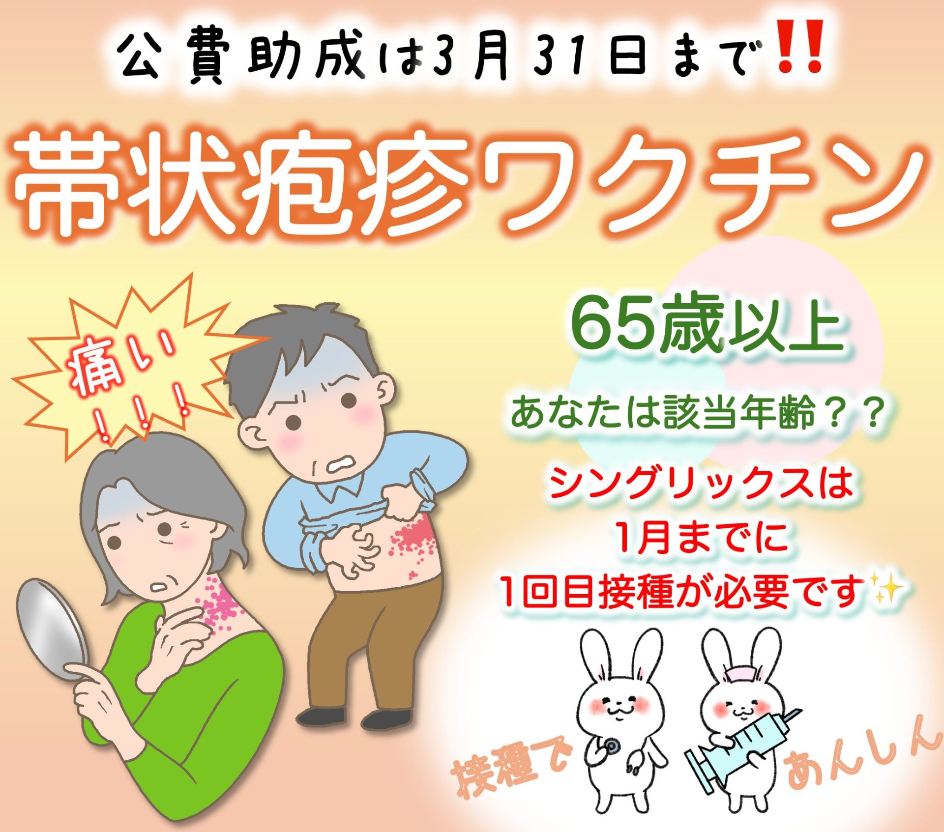 ・上記のご年齢の方で、昨年度に、シングリックス1回目を接種された方でも、定期接種として2回目を受けることができます